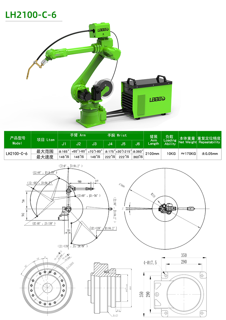 | 額定負載(kg) | 10 | 活動半徑(mm) | 2100 |